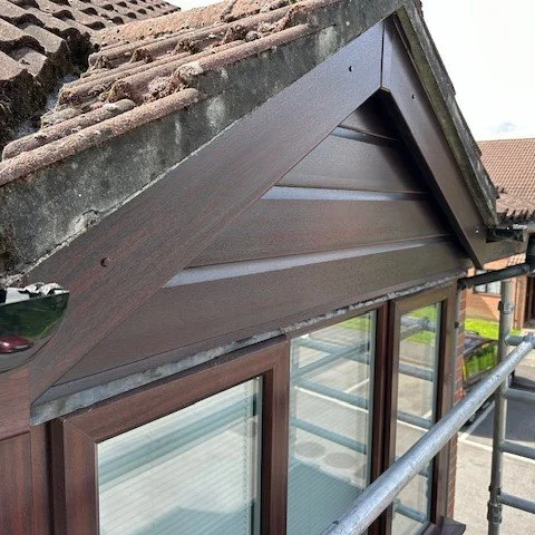 We fit standard UPVC Fascia’s as well as composite Mock Tudor boards in colours like Rosewood, Black Ash, Light Oak, Anthracite Grey, White, and White Foiled. We also offer Decorative Fascia’s in convex and concave styles, with optional ball finials, bracing bars, and dentil mouldings. We can also provide bespoke boards to match or replicate any design..